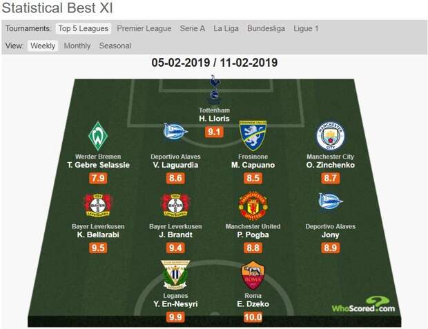 Украинский полузащитник «Манчестер Сити» Александр Зинченко попал в список лучших игроков Европы за неделю среди топ-5 лиг по версии авторитетного портала WhoScored.